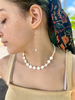 Feito com pérolas de água doce irregulares e moedas de madrepérola.